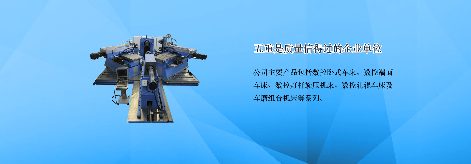 青島五重?cái)?shù)控機(jī)床有限公司(原青島第五重型機(jī)械廠)是一家集科研,生產(chǎn),銷售為一體的數(shù)控機(jī)床生產(chǎn)企業(yè),主要產(chǎn)品:端面車床,數(shù)控端面車床,車銑復(fù)合機(jī)床,車磨組合機(jī)床,膠輥磨床,地磅遙控器,數(shù)控旋壓機(jī)。連續(xù)多年被評為青島市信用企業(yè)、質(zhì)量信得過單位。公司位于青島國際中小企業(yè)工業(yè)園,地理位置優(yōu)越,距流亭飛機(jī)場僅10公里,濟(jì)青、榮烏、青威等多條高速公路經(jīng)過,交通十分便利。... [MORE + ]